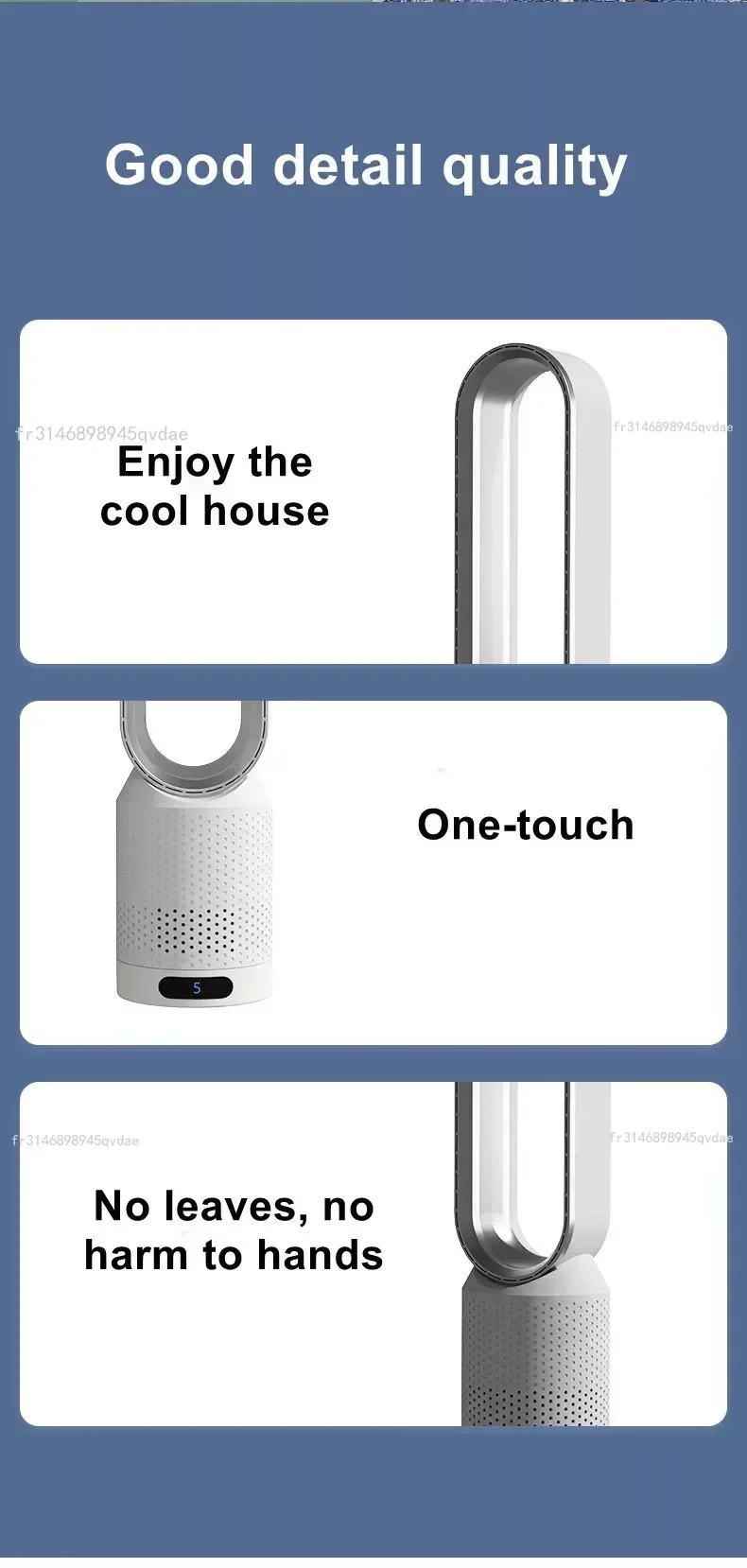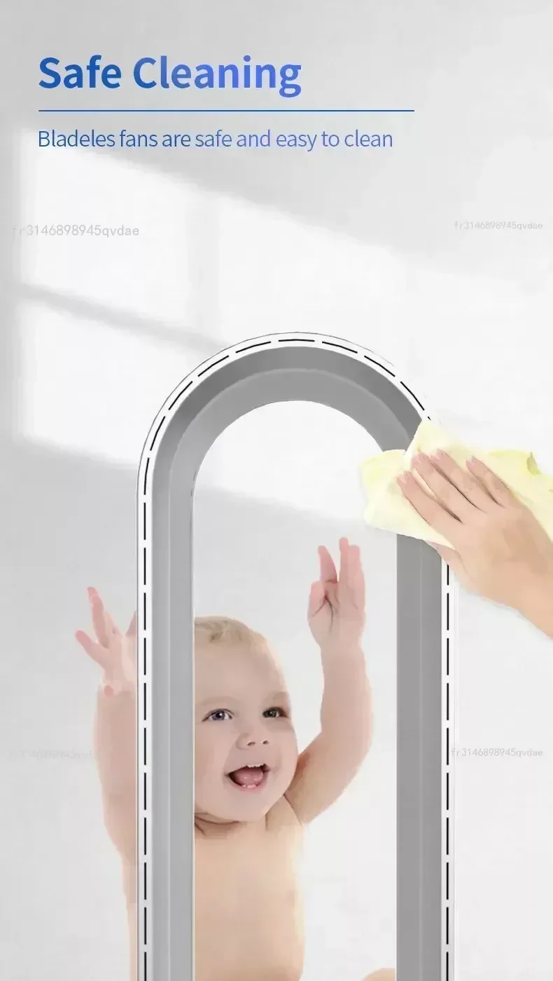 1. Leafless Design: This tower fan can provide fresh air without rotating blades, compared to traditional rotating blade fans, the leafless design will not hurt your baby and pet, it is an ideal summer must-have for families with children and pets. Easy to clean, just wipe the surface with a rag.