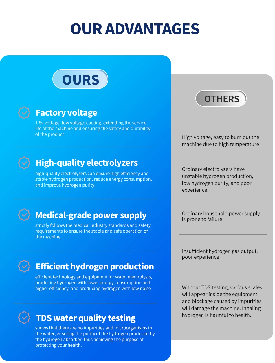 2. يمكننا ضمان 6000 ساعة وضمان لمدة عامين لجهاز الهيدروجين الخاص بنا.