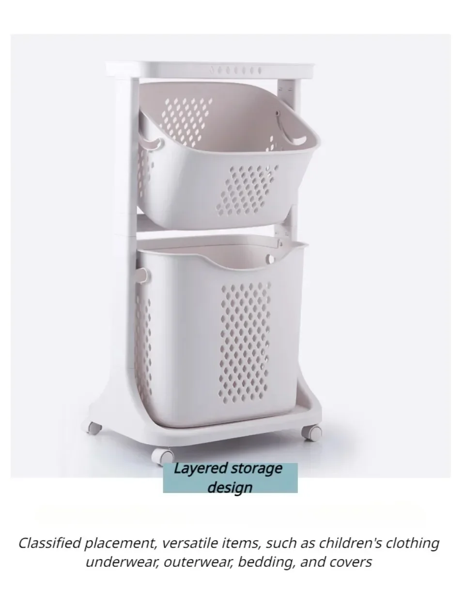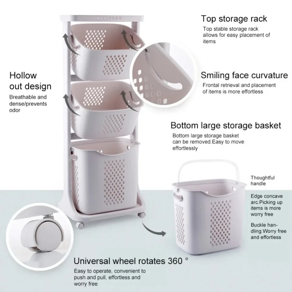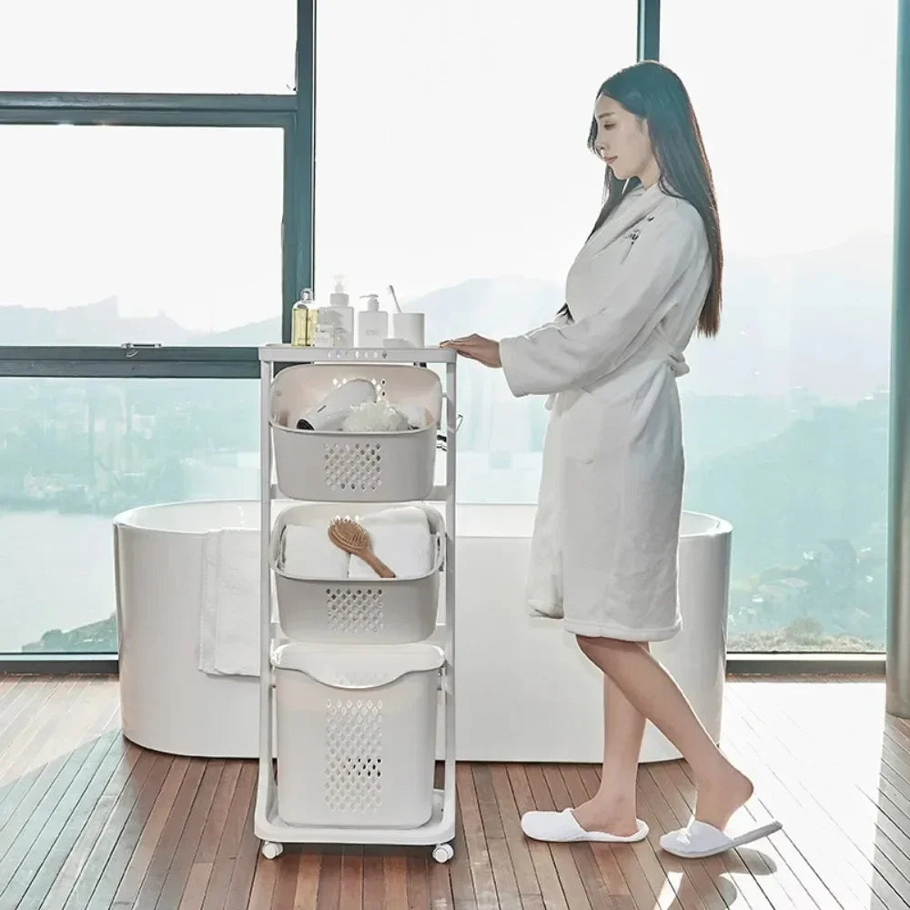 3-Tier Laundry Storage Basket Bathroom Dirty Clothes Storage Basket With Wheel Clothes Sorter Organizer Hamper Rack Rolling Cart