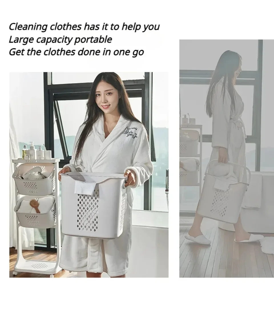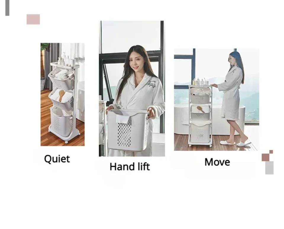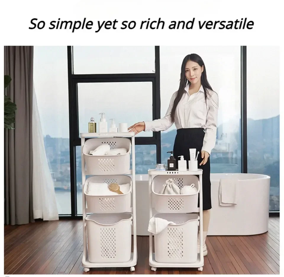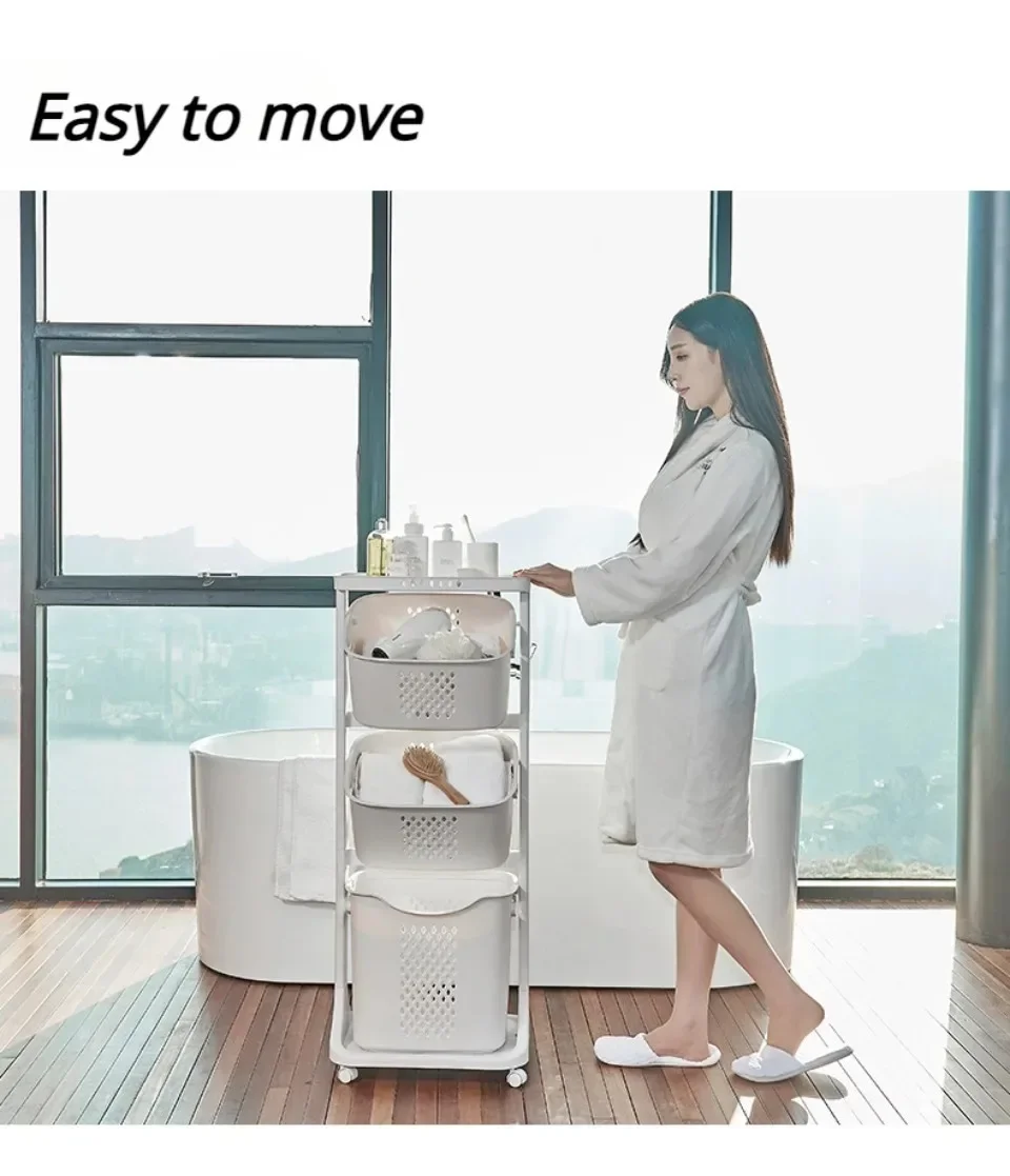 3-Tier Laundry Storage Basket Bathroom Dirty Clothes Storage Basket With Wheel Clothes Sorter Organizer Hamper Rack Rolling Cart
