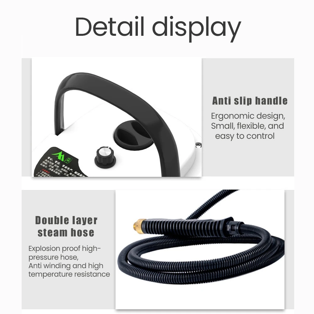3. Extend the power cord and steam hose, single operation is easy, can meet the cleaning feet.