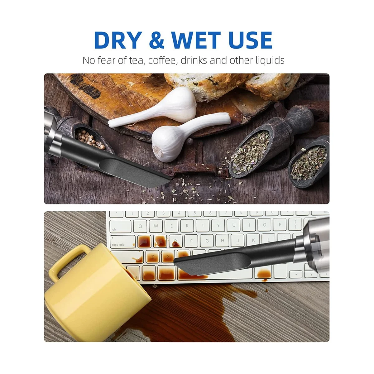 Cordless Handheld Car Vacuum Cleaner: The cordless design allows you to the cord and clean without restraint. This portable car vacuum cleaner is compact and exquisite in appearance, easy to carry . 6,000 PA Strong Suction: This cordless handheld car vacuum has a powerful suction power of up to 6000 PA and can easily suck dust, crumbs, sand, pet hair, bugs and water stains and any other small items. Long Battery Life: The cordless handheld car vacuum has a built-in 5000mAh lithium battery with a charging time of 3.5 hours and can be used continuously for 30 minutes on a full charge. The -ion battery provides high performance power and works smoothly without power. Support Wet & Dry Dual-Use: We specially configured this cordless handheld car vacuum cleaner with high-density nano-level HEPA filter, which is removable, washable and reusable. cordless handheld car vacuum cleaner supports both wet and dry dual-use. Various functions to meet the needs of different users. Wide Applicability: Humanized handle design, so you can easily operate without feeling tired. The size of car vacuum is only one third of the traditional vacuum cleaner, so you can take it anywhere, anytime and make your living space spotless. Suitable for car, home, office and other environments. Colour:Black Material:ABS Package Contents: 1 x Handheld Vacuum Cordless 1 x USB Cable