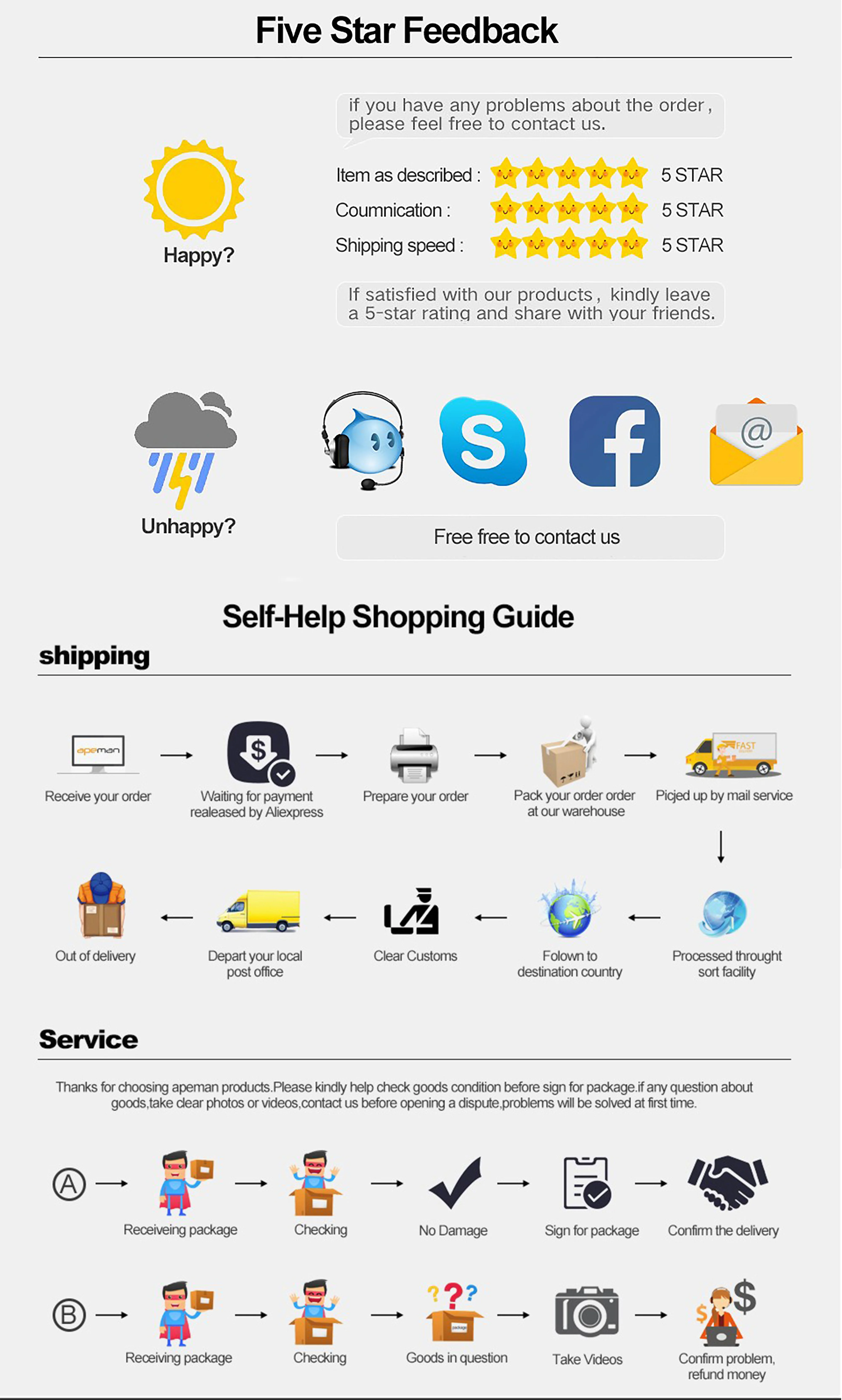 A: When you still haven't received the package after the receiving protection period, we will check the logistics situation and provide you with corresponding guidance. In case of package loss, we will provide a full refund and provide you with the most reassuring after-sales protection.
