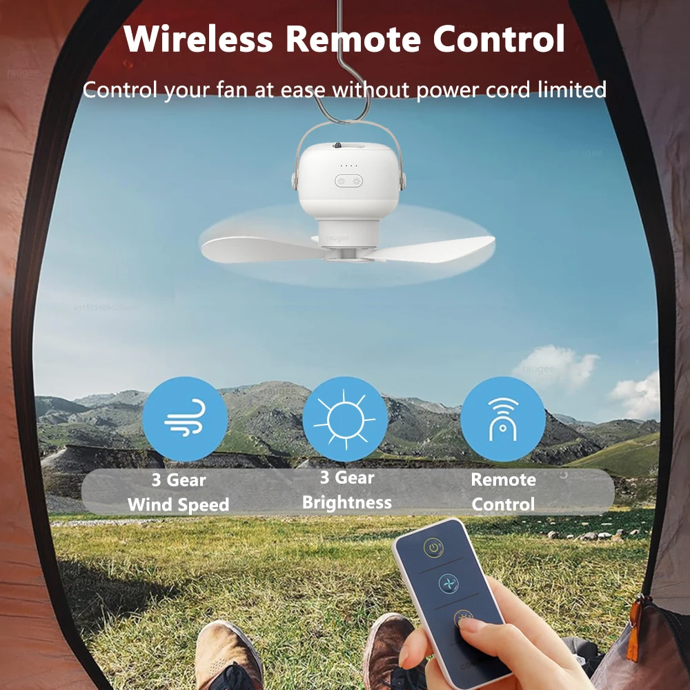 REMOTE CONTROL & LED Lights — Compared with traditional camping fan, our portable tent fan comes with Wireless Remote Controller , no need standing up or stretching out your arms to adjust the fan, so convenient for busy hands. Have night lights with adjustable 3 levels brightness, lighting up night in tent or outdoor activities, safe and comfortable in hot night.