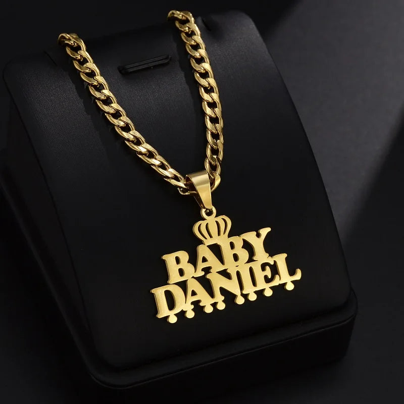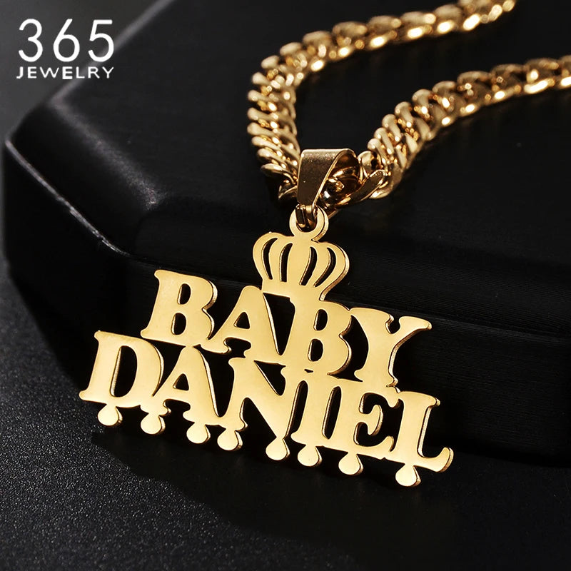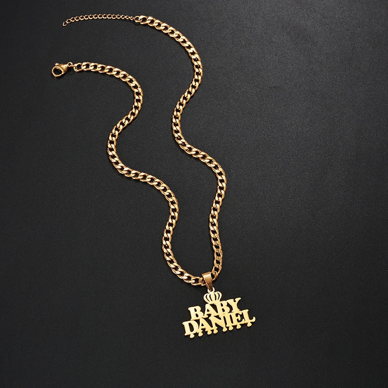 Name:Custom Baby Letter Pendant Necklace Crown 5mmNK Thick Chain Stainless Steel For Boy Girl Birthday Gift Trendy Customized Jewelry