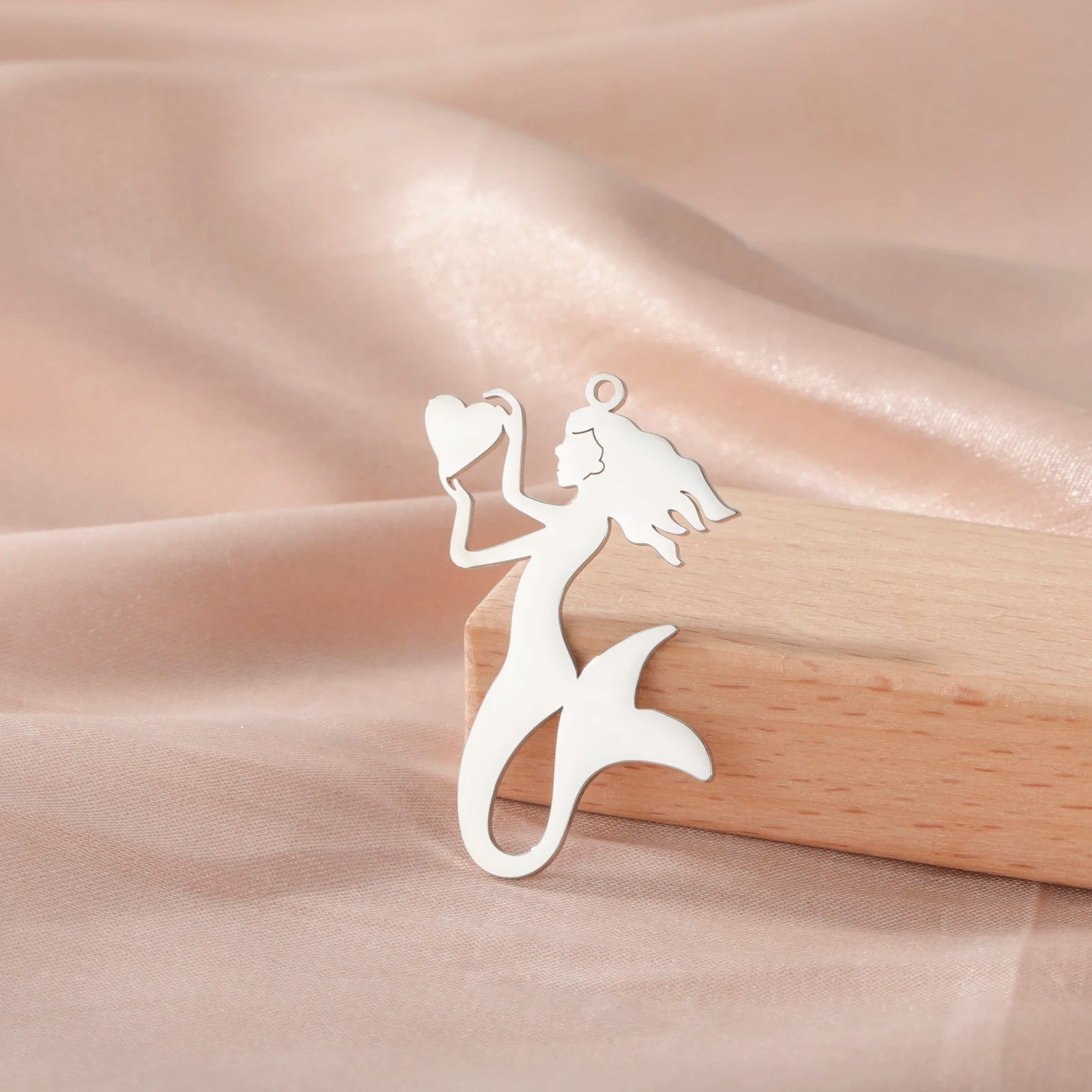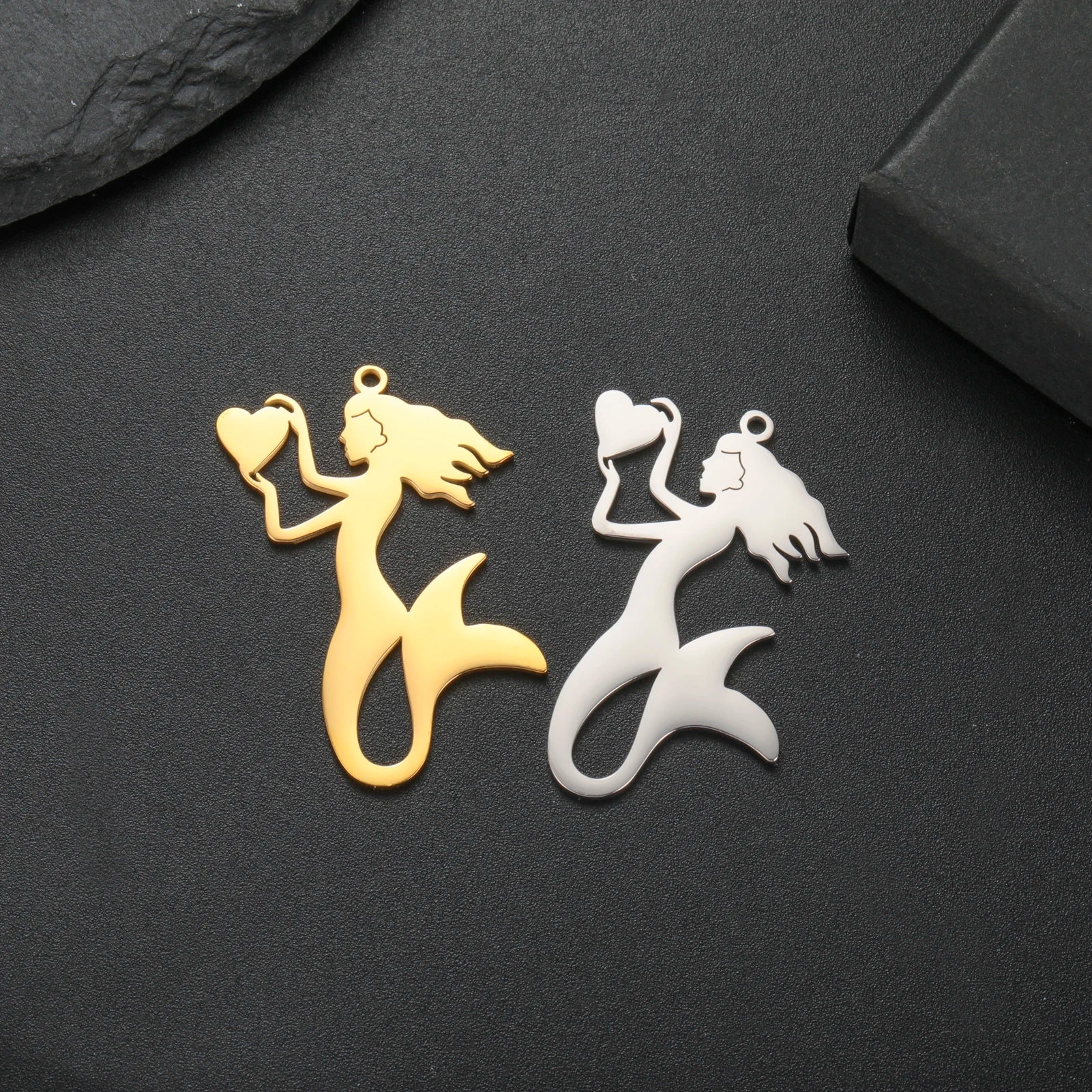 EUEAVAN 1pc Mermaid Stainless Steel Pendant Ocean Sea Fish Tail Charms Necklace Earrings Jewelry Making Accessories Wholesale
