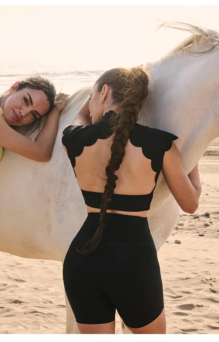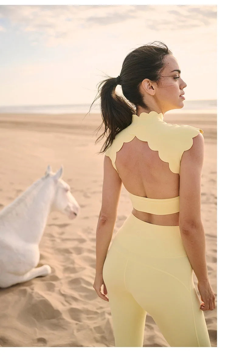 FUBEIKE Backless Hollow-out Waistcoat Yoga Clothes High Waist Leggings Bras For Women Running Workout Fitness Sportswear
