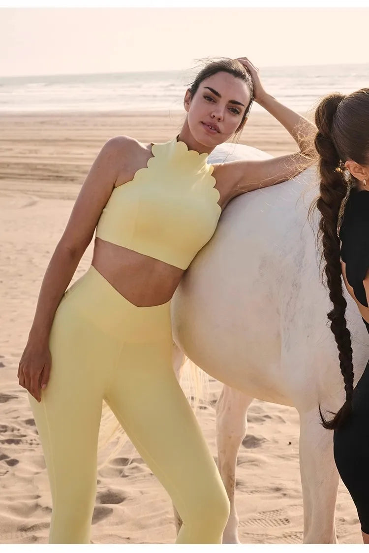 FUBEIKE Women's Hollow-out Lace Tight Top With Chest Pad Nude Feel Sports Vest Fitness Clothing Beauty Back Yoga Clothes Bra