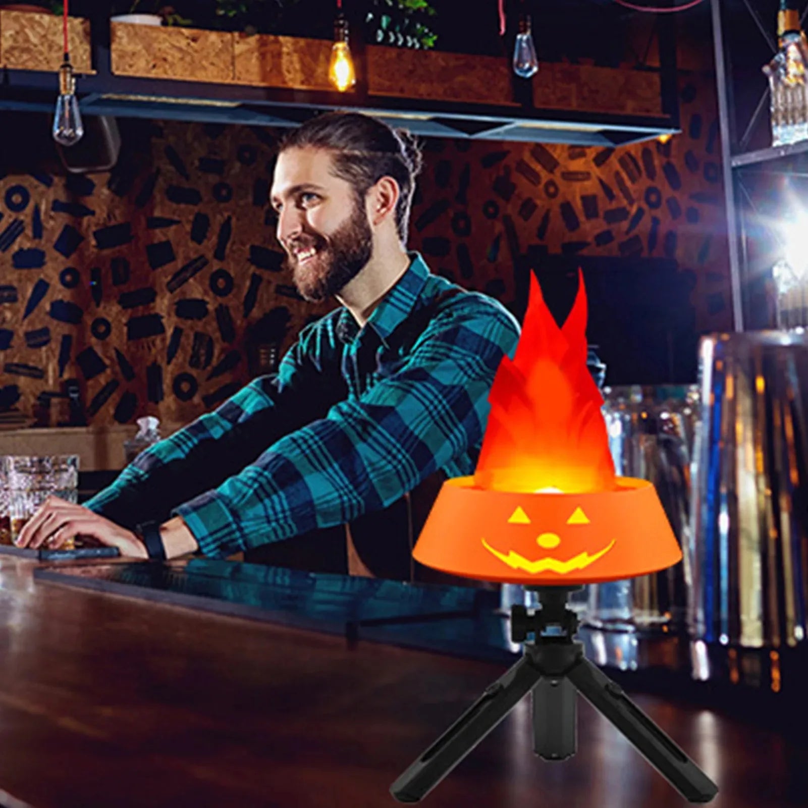 Realistic Flame Effect: This Halloween Pumpkin Fake Fire Lamp features high brightness LED beads that create a vivid and flickering flame effect, mimicking a real fire for a spooky yet safe ambiance. Perfect for haunted house centerpieces or Halloween bar decorations.