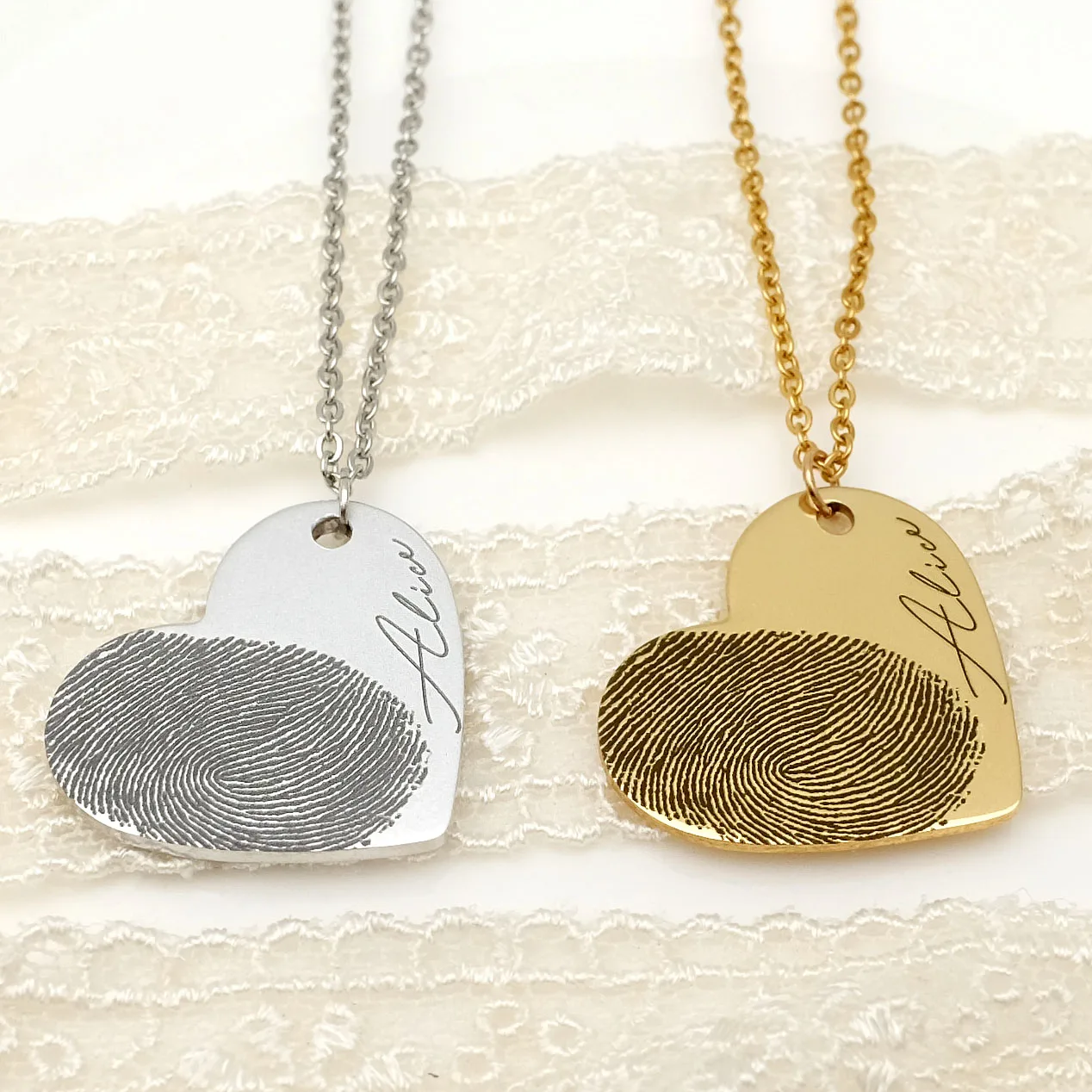 Personalized Fingerprint Necklace Engraved Fingerprint Handwriting Jewelry Heart Pendant Custom Memorial Necklace Gift For Her