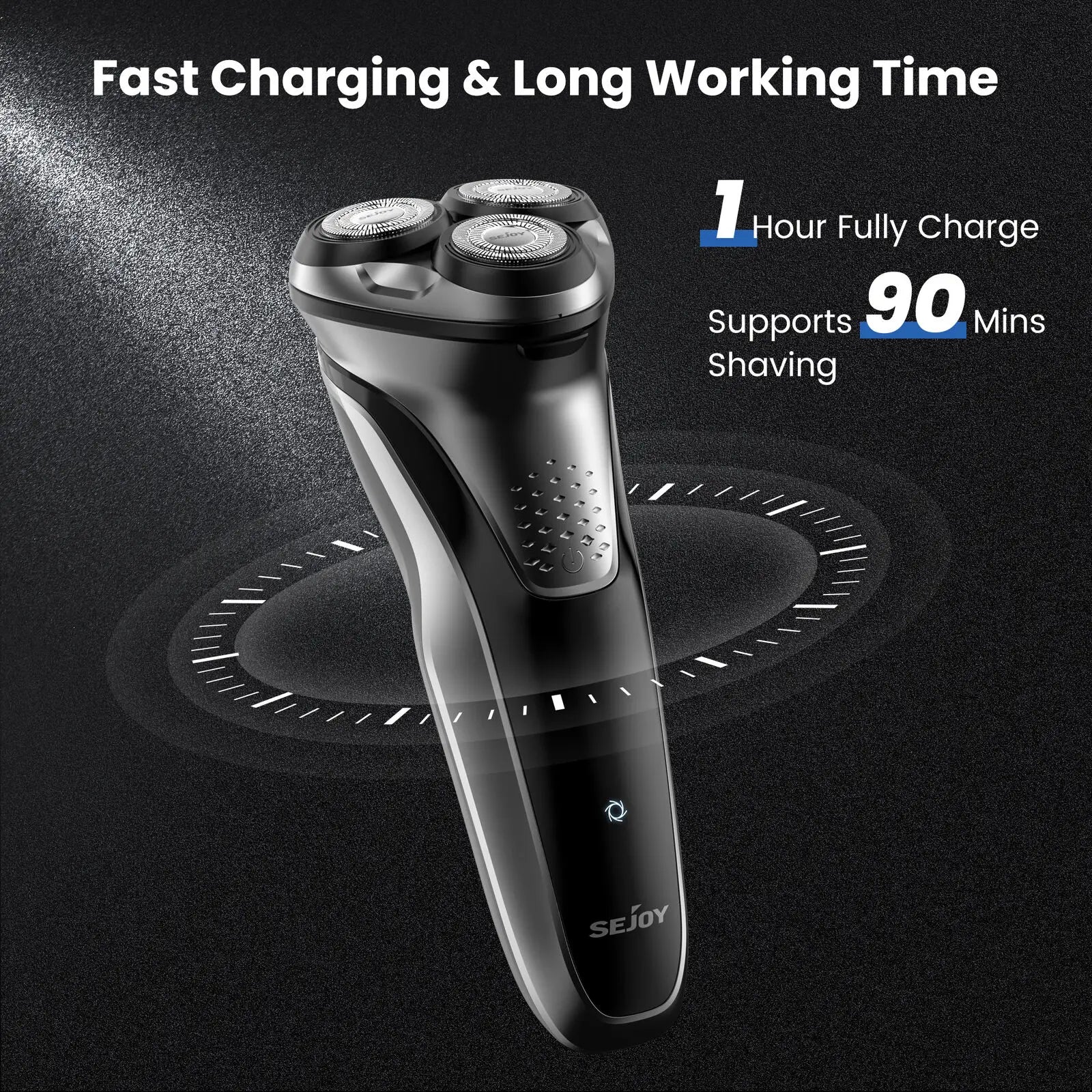 This electric rotary razor can be recharged through any USB ports, allowing you to charge your electric shaver anytime, anywhere. A full charge takes only 1 hour and last more than 90 minutes - that's about 17 times. Convenient and suitable for your daily and travel use.