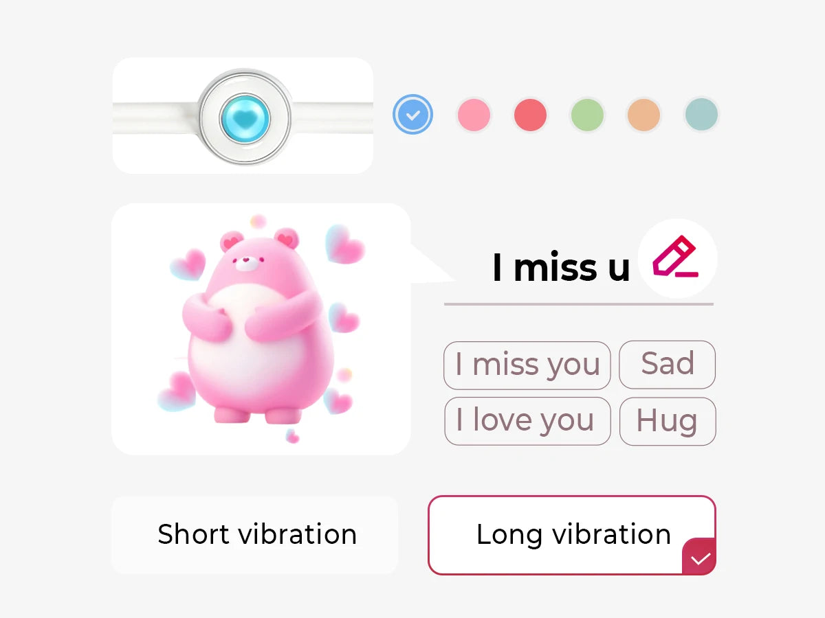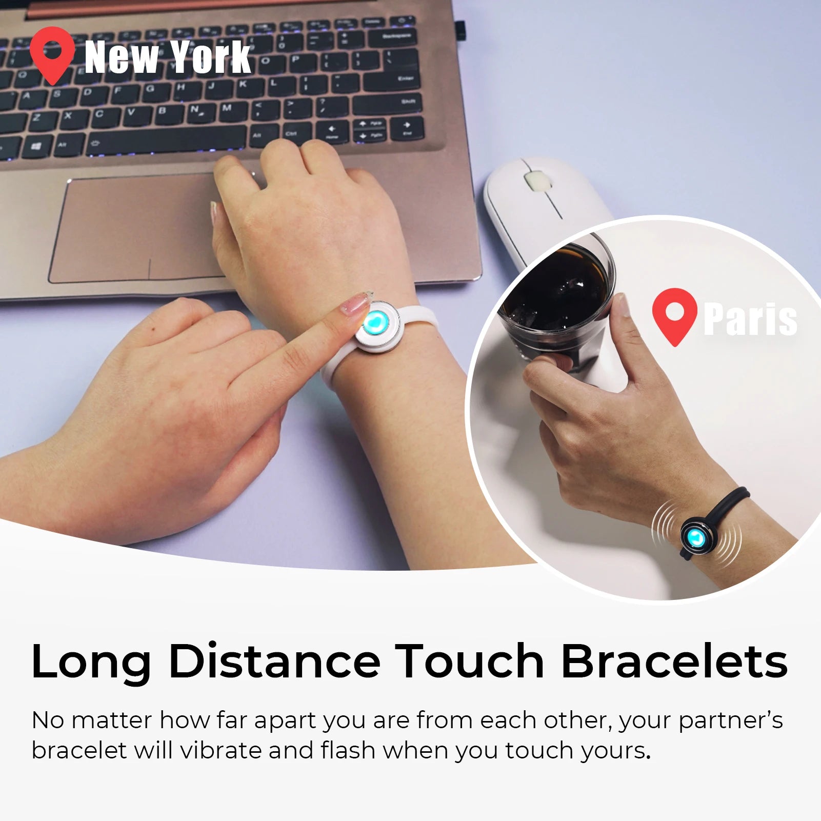 Adjustable light color and vibration intensity allow the bracelet to flash and buzz on your preference. Feel your partner's love and touch on your wrist, always at the ready.
