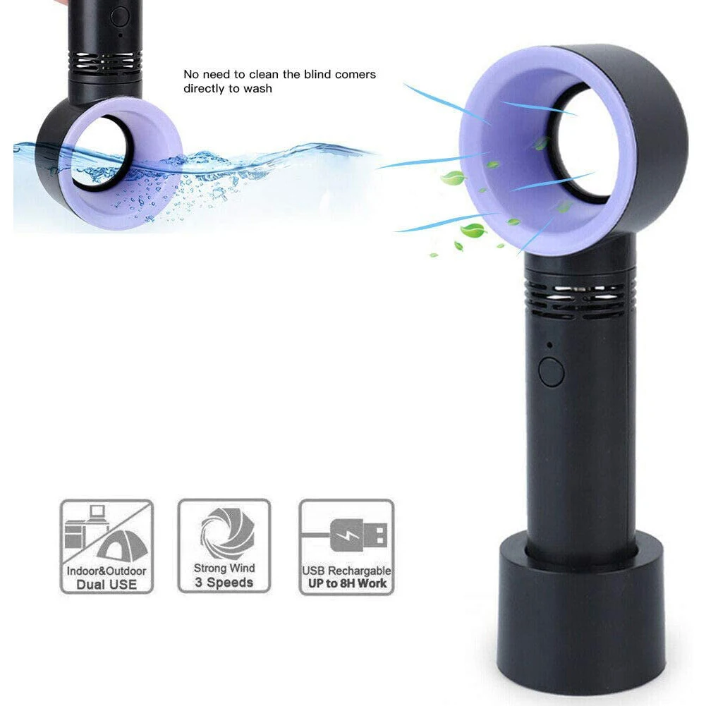 Handheld Bladeless Fan USB Charging Desktop Leafless Fans 3 Gears Electric Cordless Fan for Home Dorm Office Specification: Color: White, Blue, Black Product Size: 68*43*210mm/2.65*1.68*8.19in Color Box Size: 72*65*215mm/2.81*2.54*8.39in Product Material: ABS+PP+ Metal Parts Usage: 3 Gear Switch 1.2.3 Service Cycle Input Voltage: DC 5V Output Voltage: DC 3V Battery: 18650 Lithium Battery Note: Due to the different monitor and light effect, the actual color of the item might be slightly different from the color showed on the pictures. Thank you! Please allow 1-2cm measuring deviation due to manual measurement. ![]()