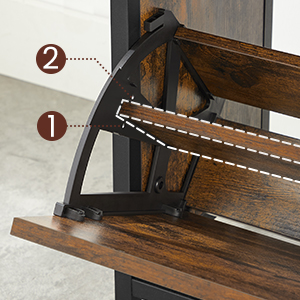 Stable:Due to the construction made of steel and chipboard and V-struts on the back, this coat rack is robust and stable (bench can withstand up to 100 kg). Just sit on the bench to dress shoes comfortably